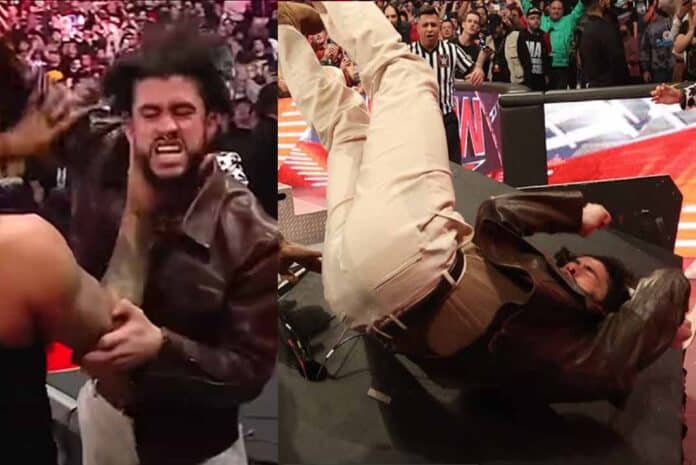 Hasta ahí todo iba bien para el cantante, sólo que otro luchador, Damian Priest, intervino agarrando a Bad Bunny de su chamarra y azotándolo en el piso, luego lo golpeó de nuevo y se lo llevó hasta la mesa de los cronistas deportivos, arrojando al suelo los micrófonos, tomando al cantante del cuello, lanzándolo por los aires y lo azotándolo, quebrando la mesa.