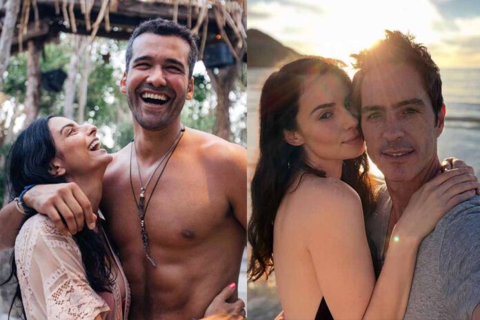 "Aunque se caiga el mundo o lluevan problemas, nada importa si estamos juntos disfrutando el ahora", escribió en su cuenta de Instagram junto a una foto de la actriz besándose al pie de una pirámide, bajo la lluvia.