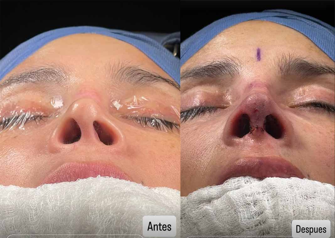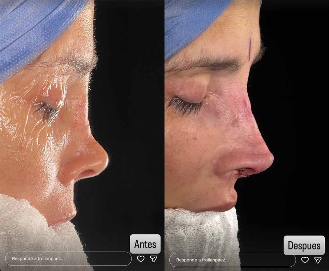 El cirujano colombiano Froilán Páez le acaba de reconstruir la nariz a Dorismar, en este antes y después, tras el mal trabajo que le hizo el médico mexicano. Fotos: Instagram / froilanpaez