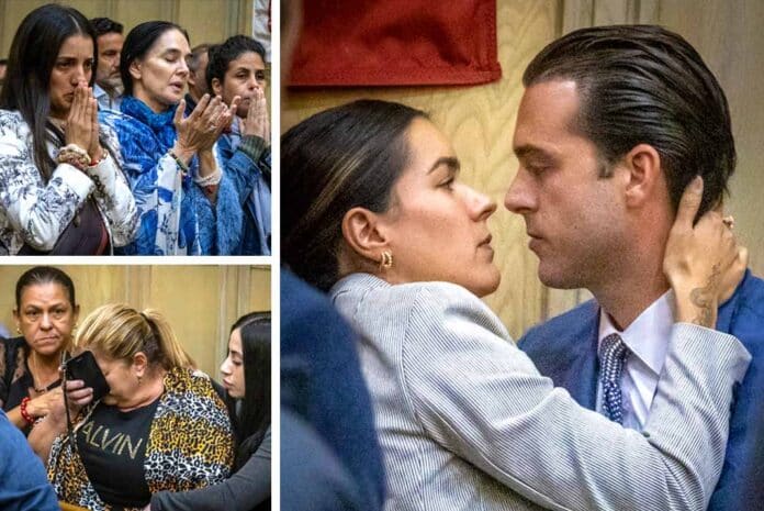 Pablo conversa con su esposa Ana Araujo en la Corte Criminal de Miami-Dade, momentos antes de ser dado a conocer el veredicto de culpable de homicidio involuntario. Foto: MezcalentEsposado, el actor envió un beso a sus familiares antes de abandonar la sala resguardado por policías correccionales. Foto: MezcalentEl actor tomó un momento durante el juicio para orar, algo que ha venido haciendo durante estos tres años de arresto domiciliario. Foto: MezcalentPablo y sus familiares escuchaban cómo la jueza daba instrucciones finales al jurado para llegar a un veredicto unánime. Foto: MezcalentPablo y su mujer se abrazan justo antes de que el actor fuera esposado y llevado a la cárcel. Foto: MezcalentPablo Lyle besa a su esposa Ana Araujo justo antes de que se lo llevaran esposado de la sala del tribunal. Foto: MezcalentLa novia del cubano fallecido mira al cielo una vez que se dio a conocer la culpabilidad del actor. Foto: MezcalentMercedes Arce, novia del fallecido Juan Ricardo Hernández, se lleva el celular a la cara para cubrir sus lágrimas, ya que la jueza había prohibido expresar cualquier manifestación de alegría o llanto al escuchar el veredicto. Foto: MezcalentPablo y Ana conversaban cuanto podían, pues sabían que probablemente tardarían mucho en volver a hacerlo, ya que ella vive con los hijos de ambos en México. Foto: MezcalentPablo Lyle siendo acariciado por su esposa Ana Araujo en la Corte Criminal de Miami-Dade, durante el último día del juicio en donde fue declarado culpable. Foto: MezcalentFamiliares del actor aprovechaban cualquier receso para mostrarle su cariño y desearle fortaleza al actor. Foto: MezcalentPablo miraba con atención a Ana, antes de que la jueza rechazara la petición de los abogados del actor, de permanecer en arresto domiciliario antes de que le dicten la sentencia el 26 de octubre. Foto: MezcalentLucas Delfino, cuñado de Pablo Lyle, abraza a Ana Araujo y a su hermana Sylvia Lyle, al momento de dar a conocer el fallo del jurado. Foto: MezcalentPablo le habló al oído a su esposa, de quien se había dicho se estaban separando. Foto: MezcalentPablo Lyle es sacado de la sala del tribunal esposado después de ser declarado culpable de homicidio involuntario. Foto: MezcalentLa familia y los amigos de Pablo Lyle oraron mientras al actor le tomaban las huellas dactilares en el tribunal, antes de que se lo llevaran preso. Foto: Mezcalent